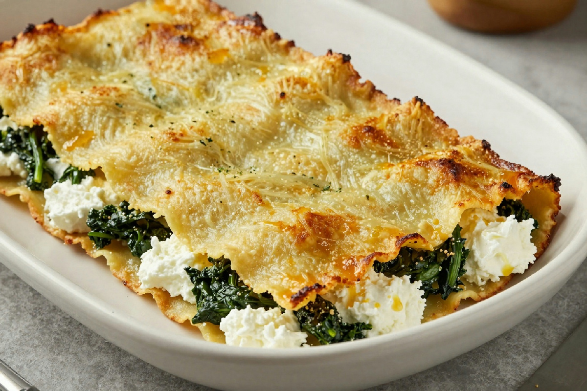 Crespelle al forno farcite con ricotta e spinaci, un piatto gustoso e semplice da preparare